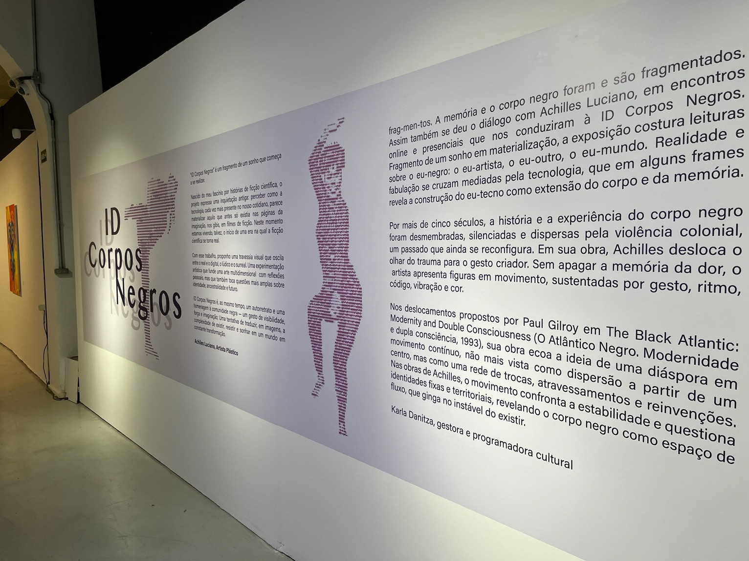 A exposição ID CORPOS NEGROS, idealizada pelo artista paulistano Achiles Luciano, apresenta uma proposta multidisciplinar que combina artes visuais, tecnologia e narrativa afro-brasileira contemporânea. O projeto parte do conceito de audiovisual expandido, no qual as obras físicas — criadas em suportes variados como canvas, lona, papel craft, fine art, pintura e ilustração digital — são ativadas por conteúdos de Realidade Aumentada, criando uma experiência imersiva e interativa para o público.